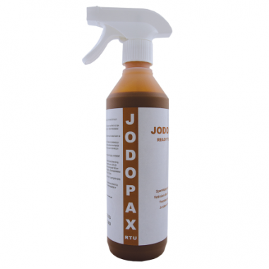 Antiseptisk jodlösning färdig att använda. Avsedd för utvärtes bruk för huddesinfektion, små sår samt instrument. Koncentration 1 %. Hållbarhetstid 2 år. Inkl. spraypump. Jodopax Ready to use.