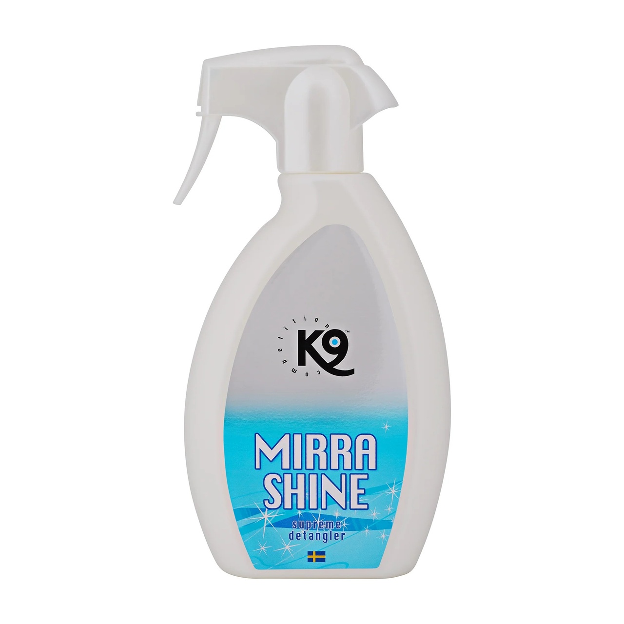 Aloe Vera Mirra Shine är en glansspray med en magisk antistat- och utredningseffekt. Gör man och svans extra lättborstad och ger pälsen en fantastisk glans. Motverkar tovor och slitage och är fuktgivande. Mirra Shine tillför den extra ''show off''-finishen på päls, man och svans som eftersträvas till show och tävling. Ingen karenstid.
