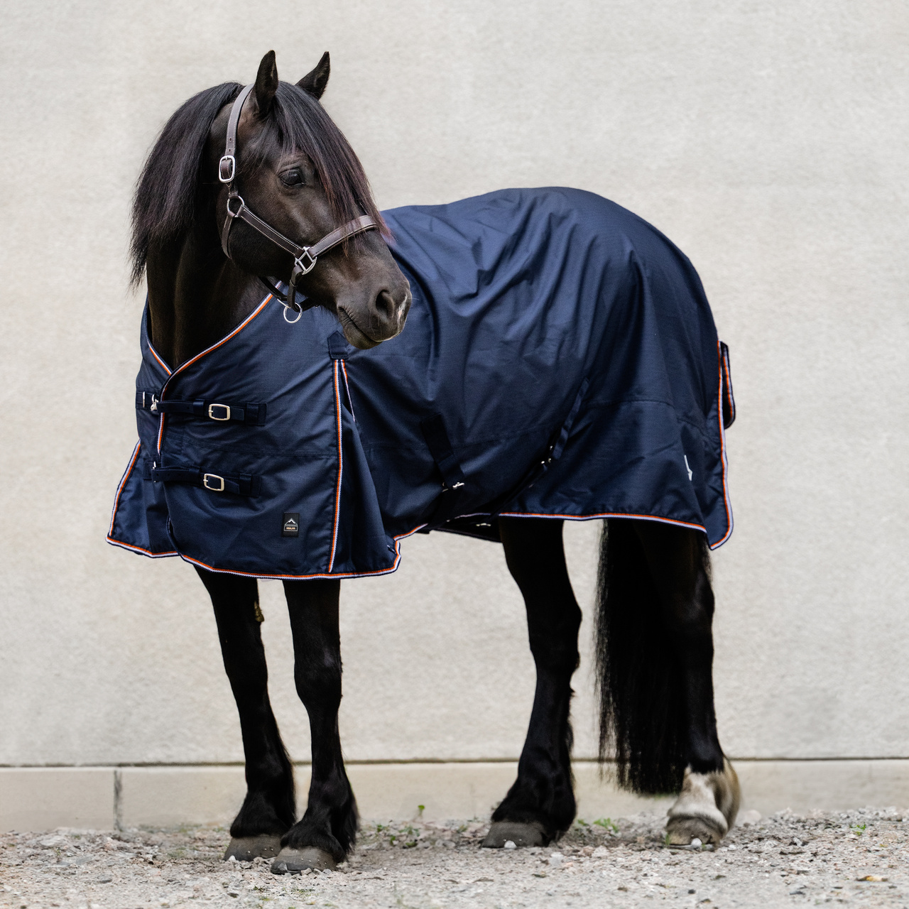 Utetäcke med 300g fyllning. 600D polyester ripstop. Vattentätt med vattenpelare 3000 mm och andningsfunktion 3000 mvt. Täcket har två bogspännen med snabbknäppe, kryssgjordar under magen samt elastiska bensnöre och svansrem.