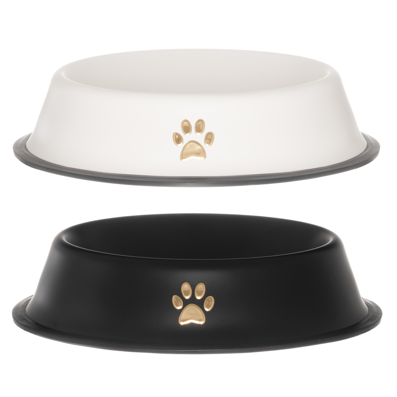 Slitstark matskål i rostfritt stål för hundar och katter med halkfri botten som håller skålen stadigt på plats under måltiden. Diameter 25,5 cm. Handdisk.