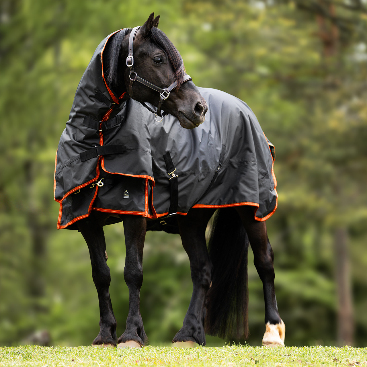 Utetäcke med fast hals och 250g fyllning. Bra andningsfunktion och i 600 D ripstop. Vattentätt med vattenpelare 3000 mm och andasfunktion 3000 mvt. Snabbknäppe i bogen, två kryssgjordar, elastiska benremmar och svansskydd. Halsen knäpps med kardborre. Bandkant med reflex söm.